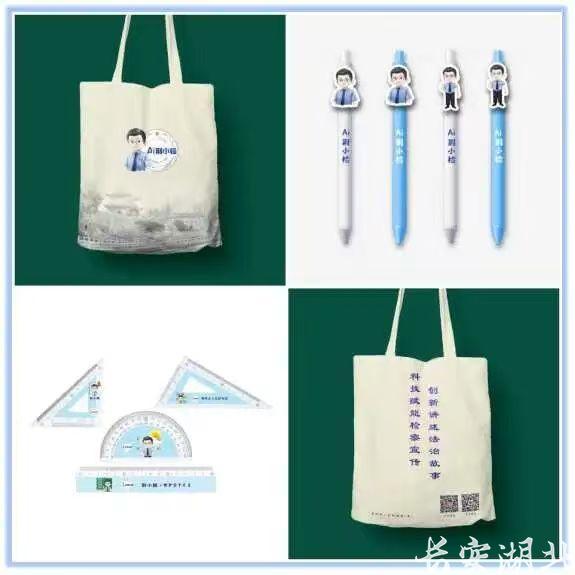 围绕“荆小检”开发布袋、套尺、圆珠笔等系列文创产品,用于普法互动,拉近与群众距离。
